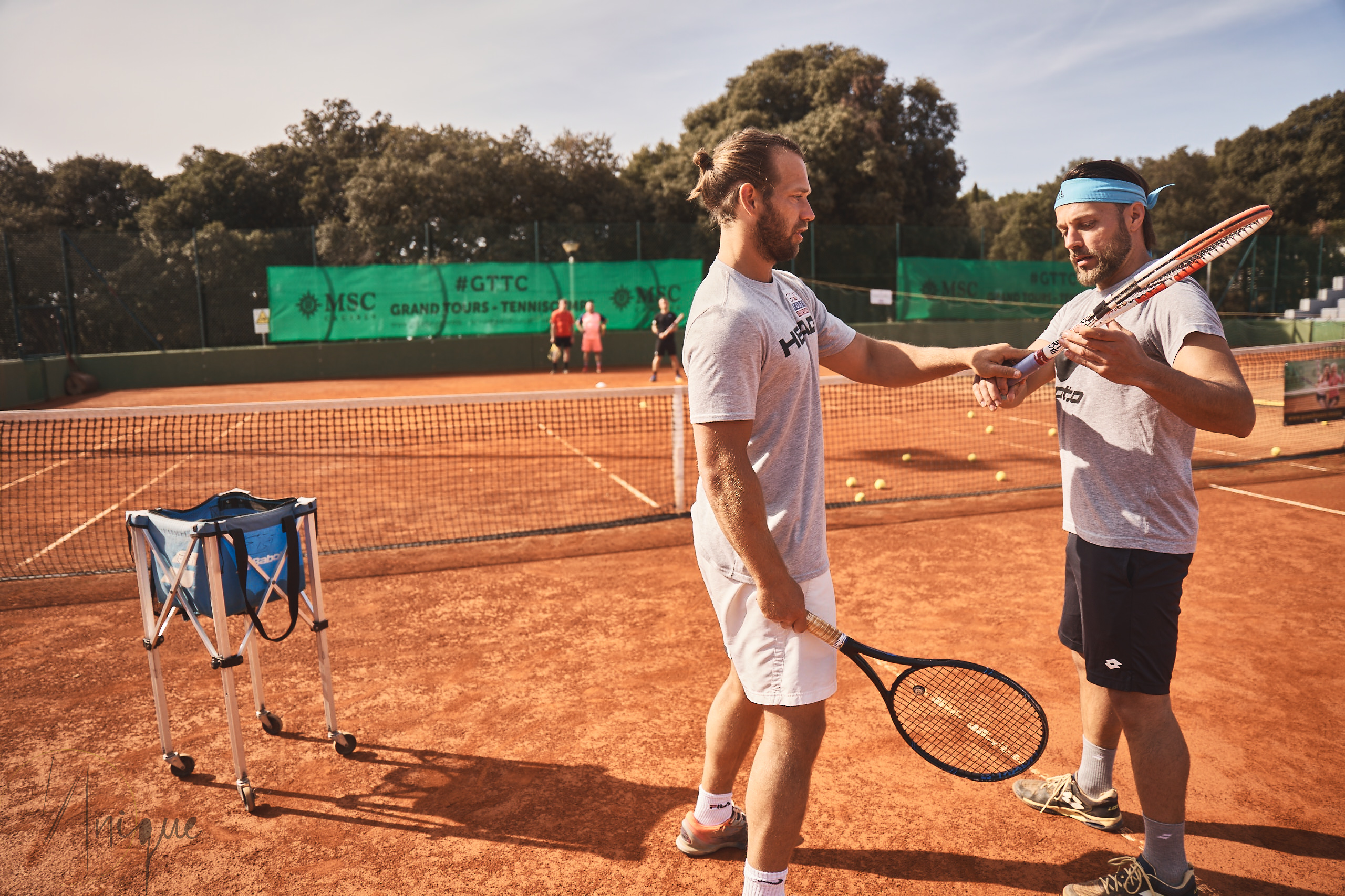 Schläger im Tenniscampbüro auswählen und ausborgen und nach dem Testen wieder zurückbringen.