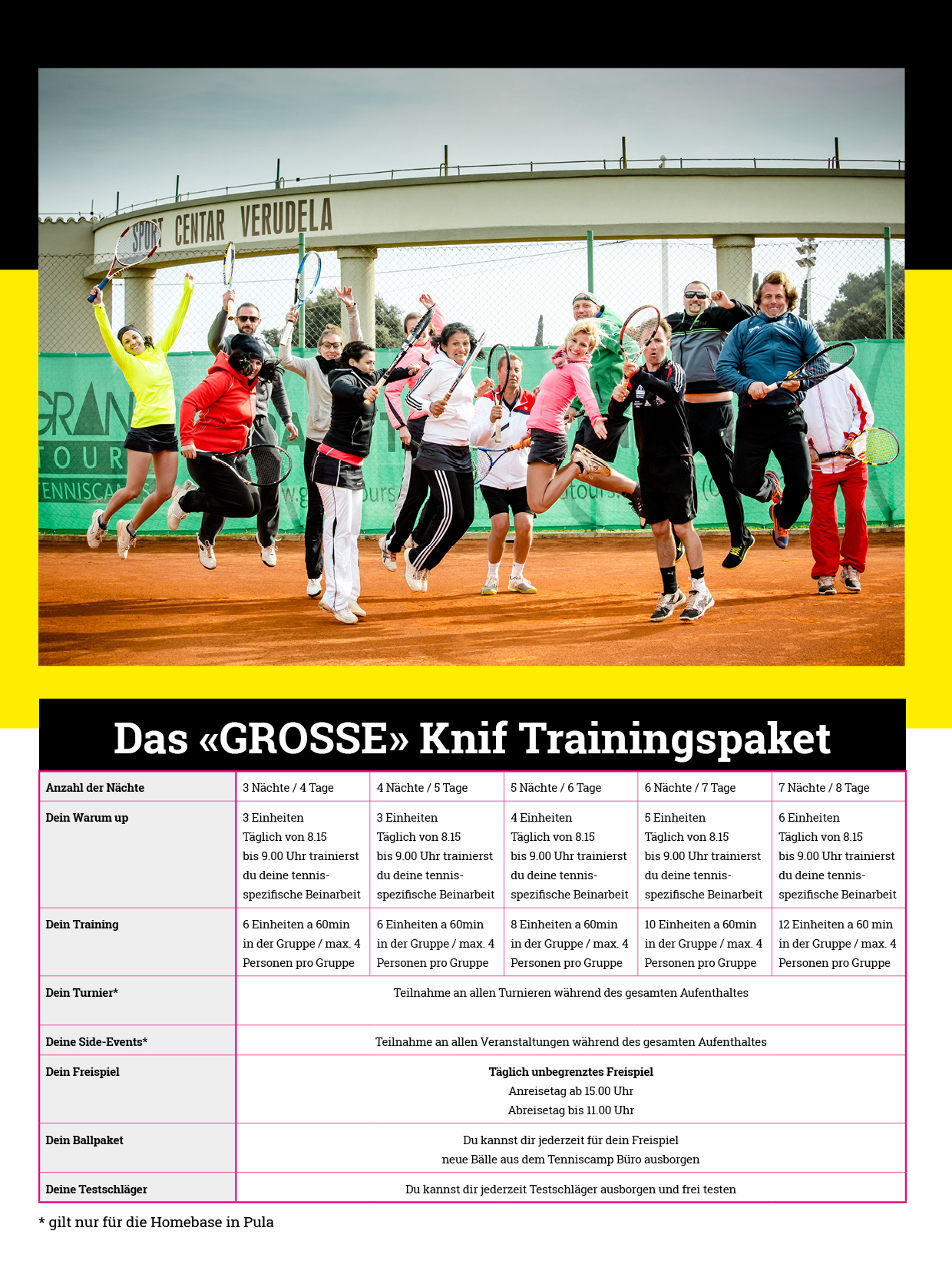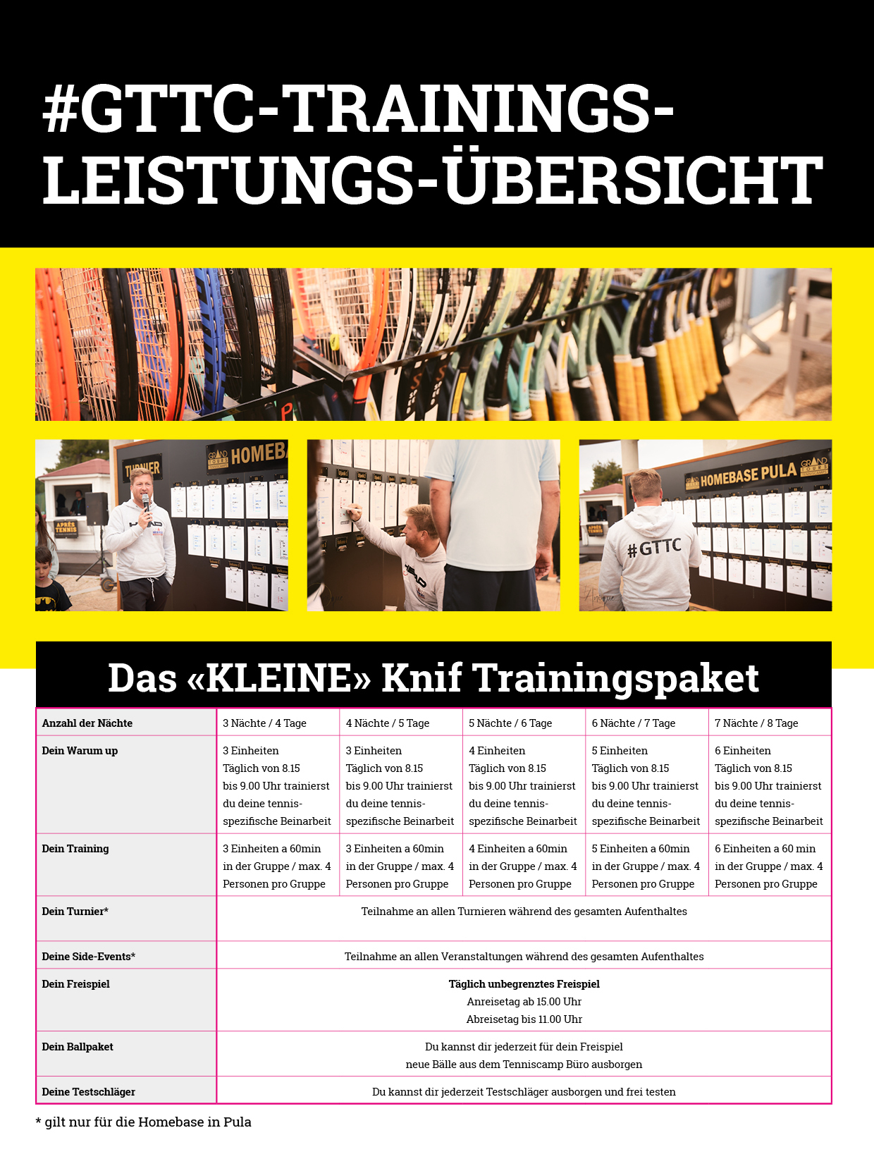 Zweimal täglich trainierst Du in einer homogenen Gruppe von max. 4 Personen jeweils 1 Stunde im Gruppentrainingssystem unterschiedliche Trainingsinhalte.
