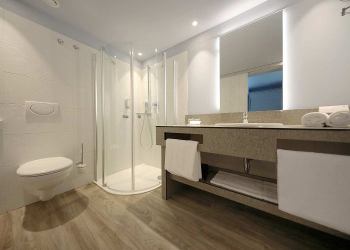 Die modern und stilvoll eingerichteten Wohneinheiten verfu?gen u?ber Bad od. Dusche/WC, Föhn, Klimaanlage, Zentralheizung, Parkett, Telefon, Sat.-TV mit Radio, Safe (inkl.) und Ku?hlschrank.