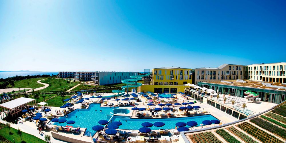 Innerhalb der Resortanlage Falkensteiner Hotels & Residences Punta Skala, auf einer Halbinsel gelegen. Eine kleine Sand-Kiesbucht befindet sich je nach Lage Ihres Zimmers in ca. 100 m Entfernung. Außerdem wird die ganze Halbinsel von einem Kies- und Felsstrand mit Badeplateaus gesäumt. Die Stadt Petrcane ist ca. 1,5 km entfernt (ca. 20 Min. Fußweg)