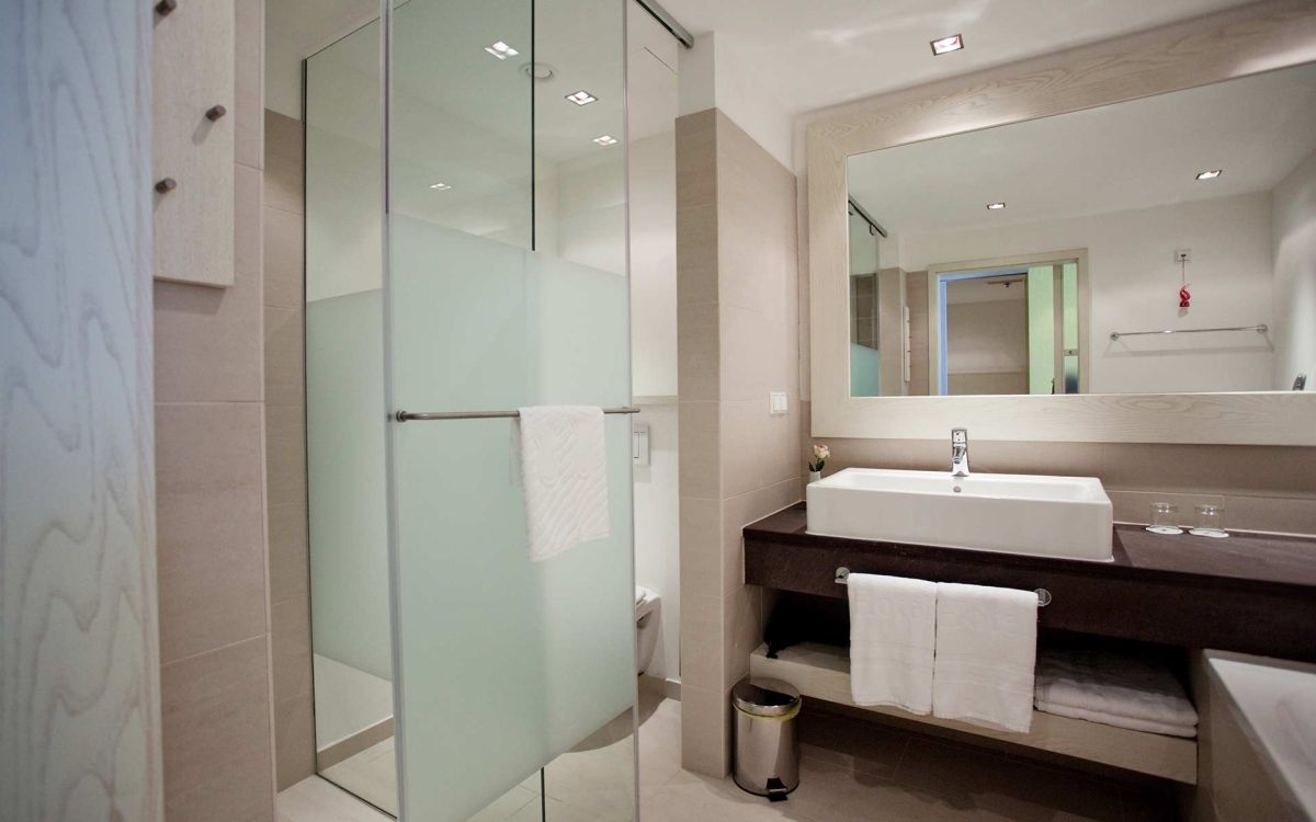 Ca. 33 m², kombiniertes Wohn-/Schlafzimmer, optisch abgetrennt, Klimaanlage: individuell regelbar, kalt, warm, Fußboden: Laminat, Föhn, Safe: ohne Gebühr, Sitzecke, Telefon, Minibar: gegen Gebühr, Internet: Breitband-Internet/DSL: ohne Gebühr, Fernseher: Flatscreen, deutsches Programm, Sat-TV, Badewanne oder Dusche, WC, Balkon: mit Sitzgelegenheit, Terrasse: Loggia