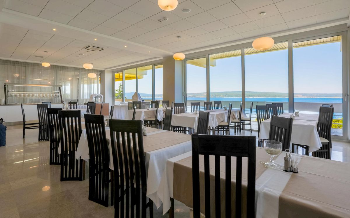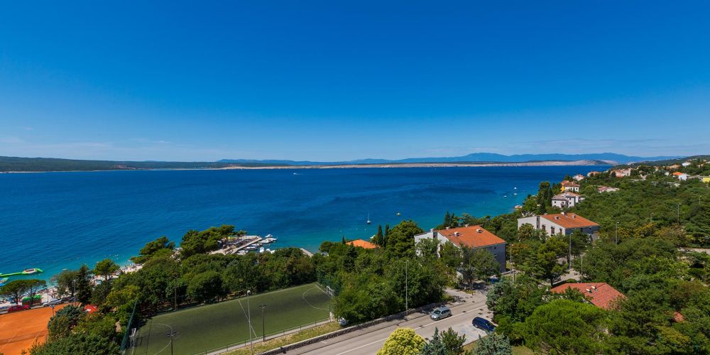 In Hanglage, mit schönem Blick auf das Meer und die Insel Krk. Den Kiesstrand erreicht man u?ber Treppen nach ca. 150m. Das Ortszentrum ist ca. 2km bzw. Einkaufsmöglichkeiten und Restaurantes ca. 100m entfernt.