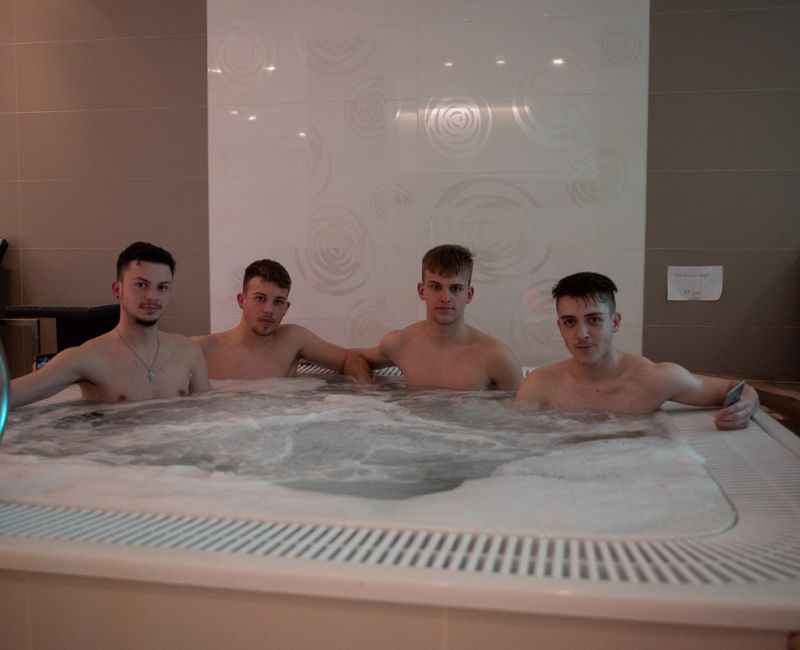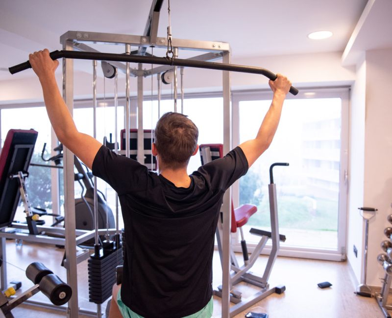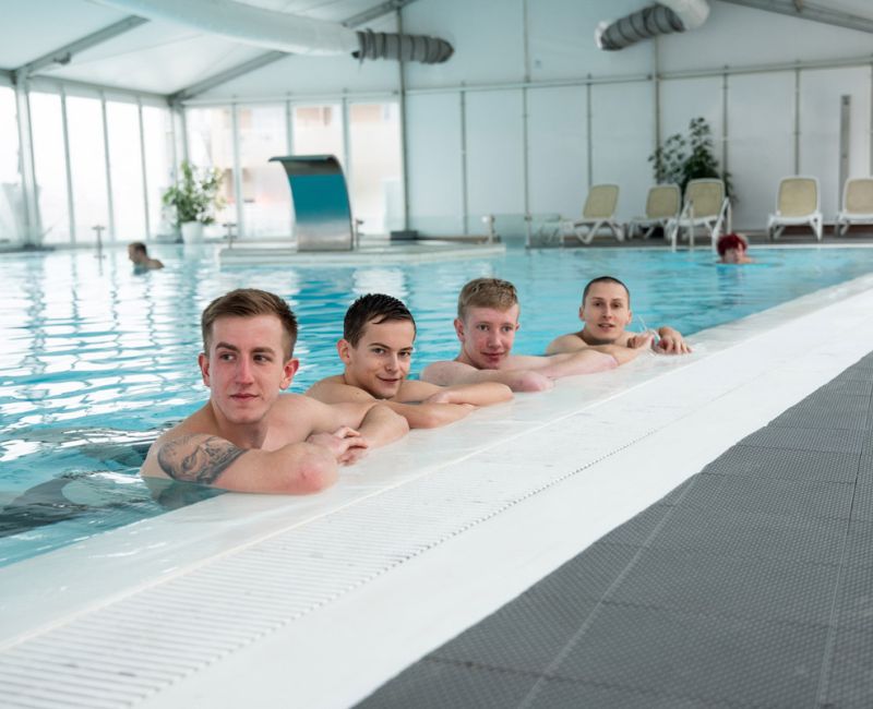 VOR DEM MITTAGESSEN ERHOLEN SICH EINIGE IM POOL, ODER MANCHE GEHEN IN DEN KRAFTRAUM